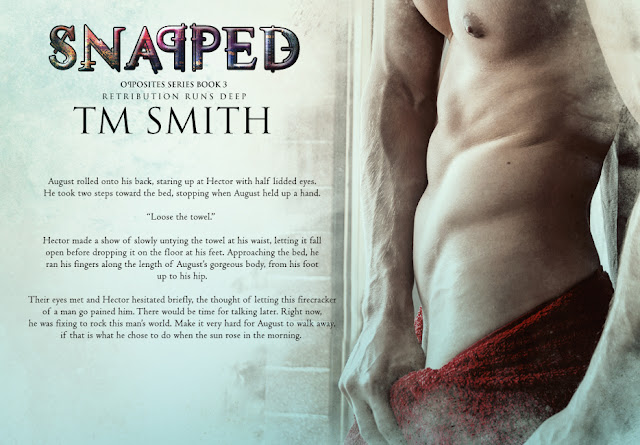 Snapped is the third book in the Opposites series, the series must be read in order. It is an adult, dystopian majorly M/M series that encompasses all manners of relationships (including M/F and F/F). In this world logic is irrelevant, love is key, and things get broken—just ask Aiyan and Kaden.